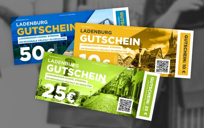Flexible Wahlmöglichkeiten: Verschiedene Beträge und Motive Der Ladenburg Gutschein ist in den drei Werten 10 Euro, 25 Euro und 50 [...]